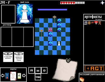 Со стороны геймплея также ничего выдающегося, ещё и ходьба по диагонали это A и D. КАКАЯ БАНАЛЬНОСТЬ, надо было переделать на Q и E, клянусь, в демке РЕАЛЬНЫХ бесконечных шахмат так и будет